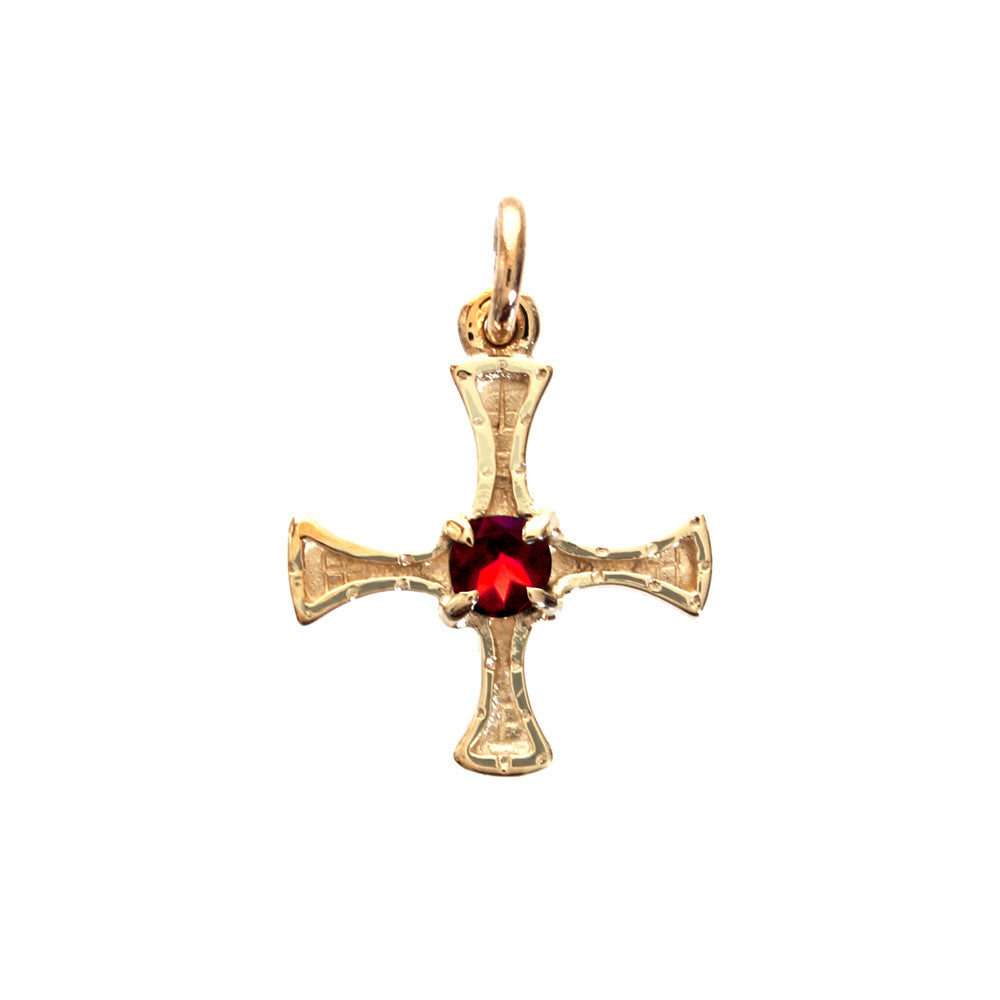 This delicate piece has a lovely red garnet in the centre, the loop is big enough to pass a chain through, perfect for a discreet cross or a young person.  This charm/pendant is popular for Christenings and Birthdays.